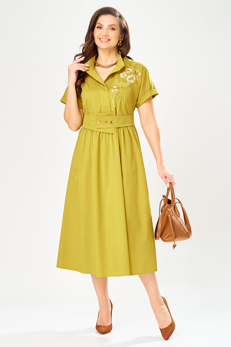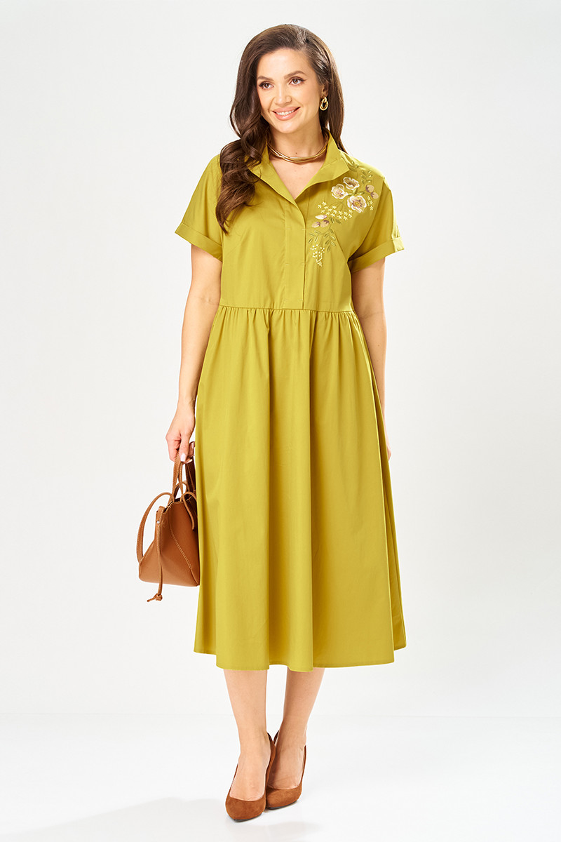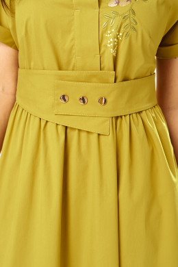 Платье женское из смесовой ткани для повседневной носки. Платье, расширенное к низу, а также отрезное по линии талии и имеет сборку. Перед имеет дизайнерскую вышивку в виде очаровательных цветов, а также две нагрудные вытачки. В боковом шве имеются потайные прорезные карманы. Горловина обработана втачной планкой и стойкой. Рукава цельнокроеные, низ рукава обработан отлетной манжетой, длинна рукава чуть выше локтя. Длинна платья макси. Для придания формы в области талии имеется пояс из основной ткани с застежкой на кнопки. В платье имеются по планке декоративные закрепки. Платье элегантного василькового цвета, в котором вы будете выглядеть очень привлекательно. За счет большого содержания хлопка в платье, ваша кожа будет чувствовать себя комфортно. Красивое и элегантное платье в котором вы будете выглядеть неотразимо.