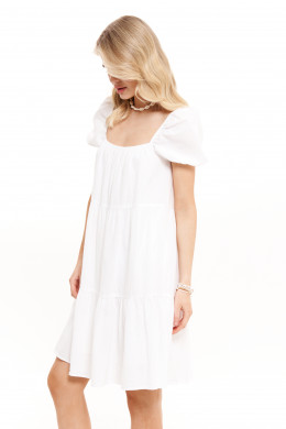 Длина миди чуть ниже колена делает это женское платье базовым элементом гардероба — оно одинаково гармонично смотрится с классической обувью и более повседневными аксессуарами. Это платье свободное подойдёт для прогулок, встреч с друзьями, офисной работы или даже нарядных мероприятий. В платье из Беларуси вы всегда будете выглядеть актуально и элегантно. Такое летнее платье идеально впишется в деловой или повседневный стиль и подчеркнёт ваш утончённый вкус. Лёгкий белый оттенок делает платье нарядным и свежим, придавая образу легкость и женственность. Женское платье станет отличной основой для создания стильных весенних или летних образов на каждый день. Благодаря качественным материалам и классическому дизайну платье прослужит долго и не выйдет из моды. Это платье из Беларуси станет незаменимым вариантом для офиса, прогулок, встреч и деловых мероприятий.