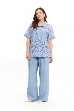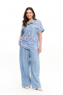 Брючный костюм (блузка, брюки) 82220 (Голубой)