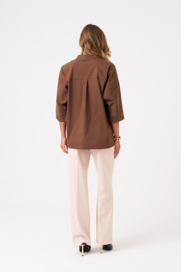 Однотонная рубашка-блузка с рукавами длиной 3/4 на манжетах представлена в нескольких расцветках. Блузка базового цвета и мягких пастельных тонов сочетается с различными вещами. Она разнообразит ваш повседневный гардероб, деловые и праздничные образы. Блузка на пуговицах женская универсальна, ее можно носить и зимой, и летом. Оверсайз блузка подойдет для работы и отдыха.