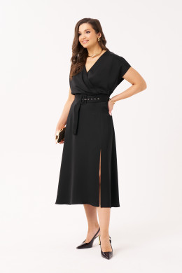 Платье женское из струящейся ткани для торжественной носки. Платье полуприлегающего силуэта. Платье на запах, а также отрезное по линии талии. Лиф переда имеет складки. Лиф спинки имеет две талиевые вытачки и средний шов. Горловина V-образная. Рукава цельнокроеные, короткие. Юбка платья, расширенная к низу. Переднее полотнище юбки имеет разрез в шве,который выходит на колено. Заднее полотнище юбки со средним швом и двумя вытачками. Платье длиной миди. Данная модель платья в элегантном чёрном цвете покорит вас своей красотой и великолепной посадкой. В данном платье вы будете выглядеть неотразимо и будете ловить на себе восхищенные взгляды.