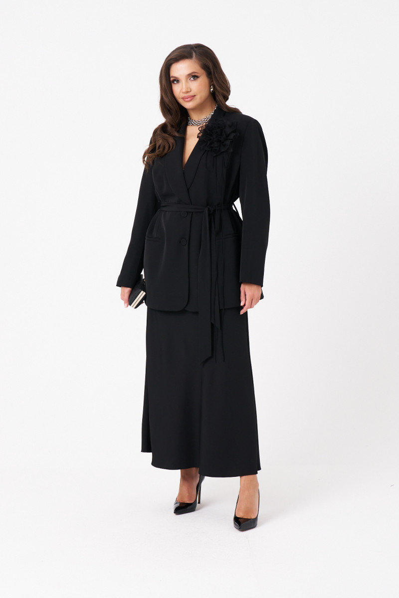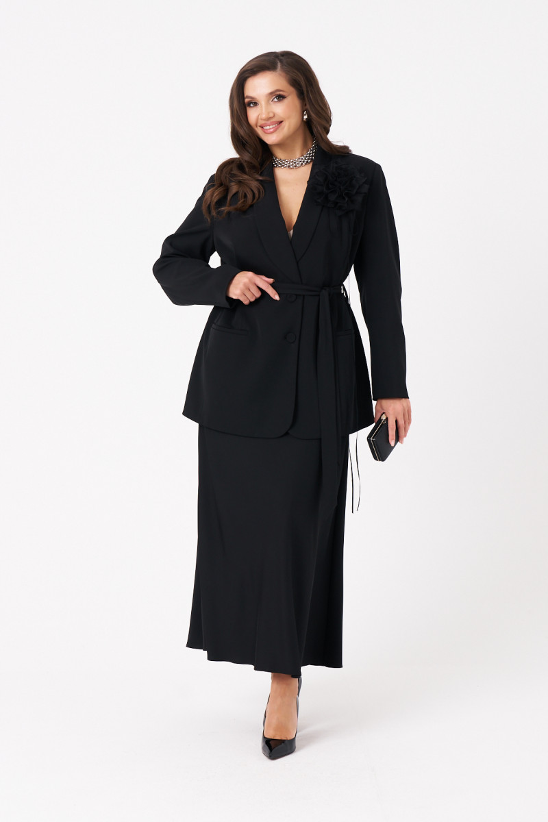 | 56 | Жакет: Длина изделия - 75см, Длина рукава - 62см, Ширина плеча - 13,2см, Ширина по бедрам - 67см, Ширина по груди - 60см, Ширина рукава - 22,2см; Юбка: Длина изделия - 93см, Ширина по бедрам - 61см, Ширина по талии - 45см; |