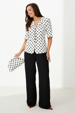 Женские брюки из струящейся ткани выполнены в классическом прямом крое. Верхний срез аккуратно обработан притачным поясом со вставкой на резинке, обеспечивающей комфортную посадку. В боковых швах расположены потайные карманы, что делает модель практичной и удобной в повседневной носке. Этот элегантный и функциональный элемент гардероба отлично впишется в повседневные образы, сочетая стиль и комфорт.
