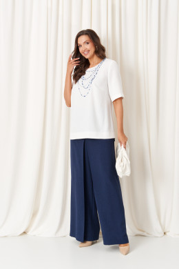| 50 | Блузка: Длина изделия по спинке - 65см, Длина рукава - 30см, Ширина плеча - 10,3см, Ширина по бедрам - 60см, Ширина по груди - 54см, Ширина по талии - 56см, Ширина рукава - 19см; Брюки: Длина брюк с поясом - 112см, Длина по шаговому шву - 81,5см, Ширина по бедрам - 57см, Ширина по низу - 33,5см, Ширина по талии - 43см; |