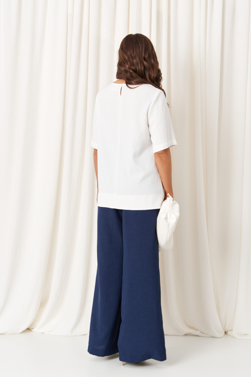 | 58 | Блузка: Длина изделия по спинке - 65см, Длина рукава - 31см, Ширина плеча - 11,2см, Ширина по бедрам - 68см, Ширина по груди - 62см, Ширина по талии - 64см, Ширина рукава - 23см; Брюки: Длина брюк с поясом - 112см, Длина по шаговому шву - 80см, Ширина по бедрам - 65см, Ширина по низу - 35,5см, Ширина по талии - 51см; |