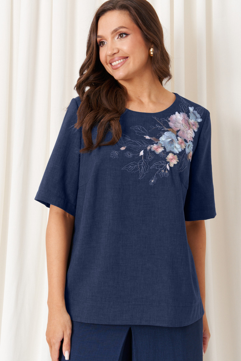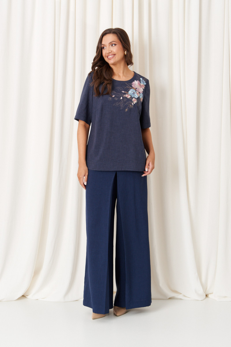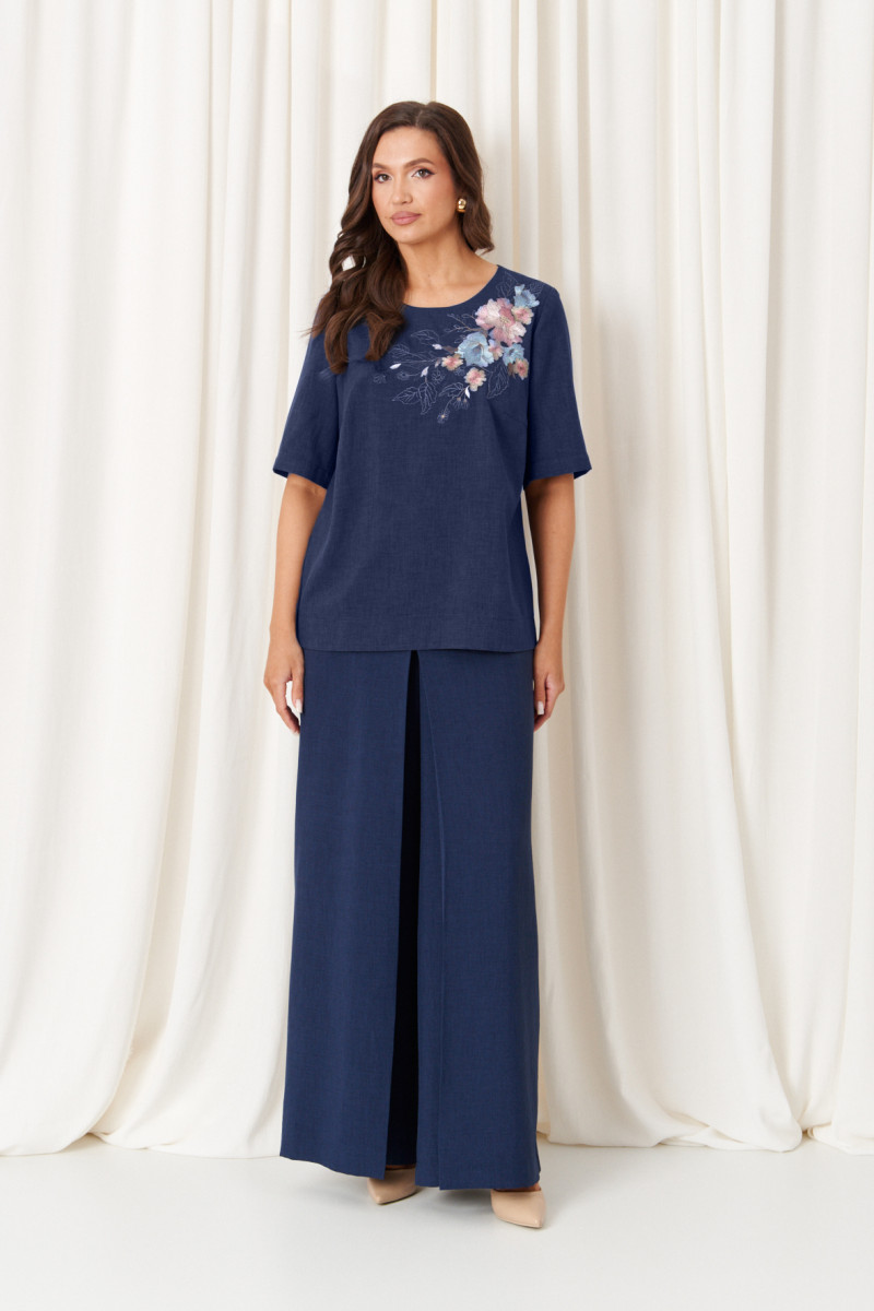 Брючный костюм (блузка, брюки) 86427 (Синий)