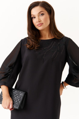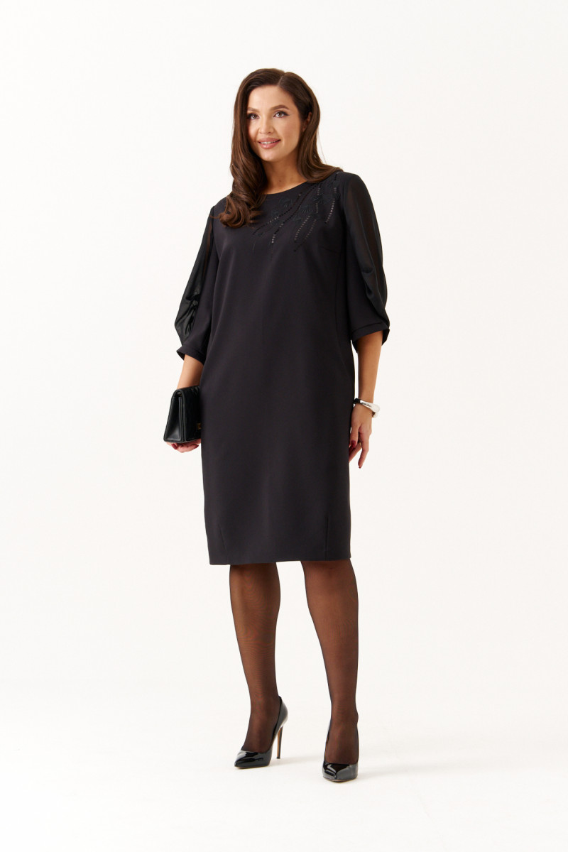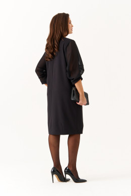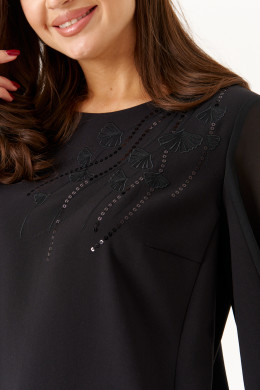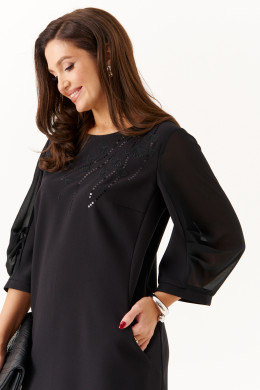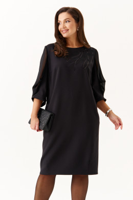 Это изысканное платье идеально сочетает стиль и комфорт. Овальный силуэт подчеркивает вашу фигуру, а мягкая поливискозная ткань ласково облегает тело, даря ощущение уюта на протяжении всего дня. Вышивка с пайетками на передней части придаёт образу праздничность, делая платье универсальным — подходящим как для повседневных прогулок, так и для особых случаев. Детали, такие как расширенная горловина, изящные сетчатые рукава с короткими воланами и аккуратные карманы в рельефных швах, добавляют женственности и нежности. Рельефы на переде создают стройный силуэт, а застёжка на спинке обеспечивает удобство. Чёрный цвет платья — это универсальное решение для стильных образов, сочетающих комфорт и изысканность, идеально подходящее для любой ситуации.